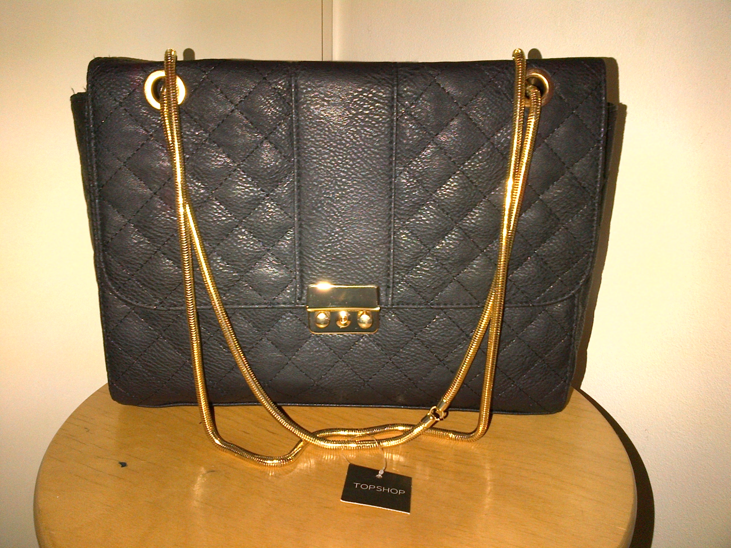 While a real Chanel Classic Flap Bag will set you bag from $3000.00 and up this look a like Topshop flap bag only costs €42.00, and for me minus the gift card it was €2.00. The sandals were €29.00.