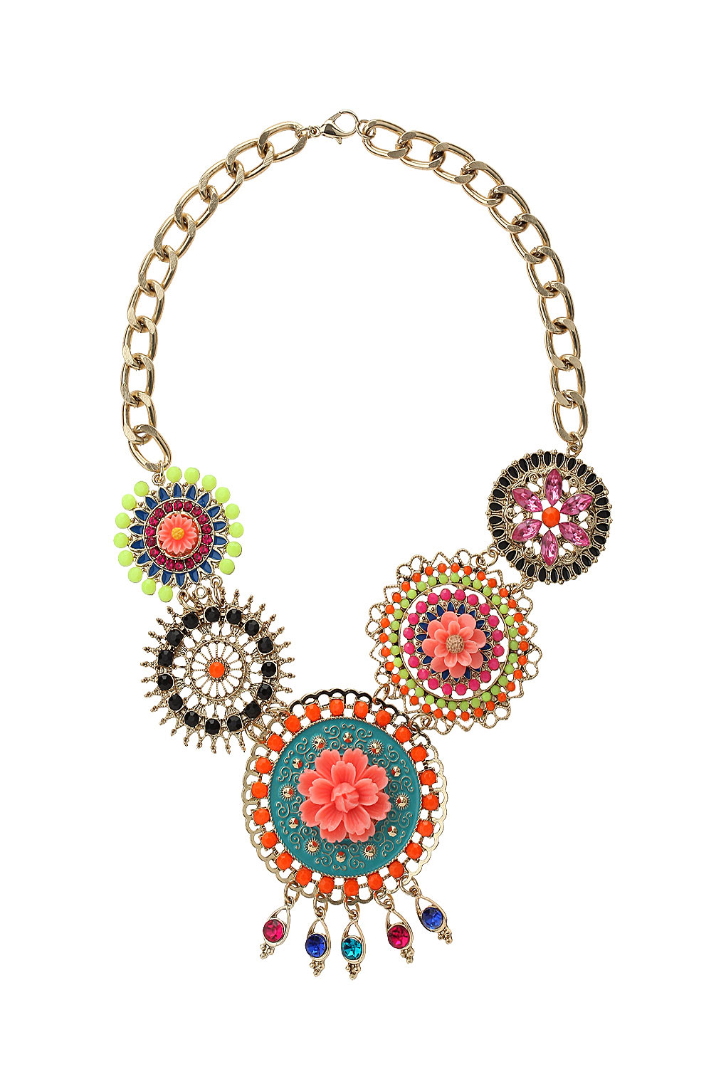 Once I entered the first floor I immediately saw Tophop and realised that I have been in de Bijenkorf in December before Christmas, but Topshop didn’t catch my attention then. I now wonder if it is at the same spot it was in December, because I noticed that some of the shop-in-shops have a different place right now. Hmmm, who knows. Anyway I went in to take a look around and the first thing that caught my eye was a piece of jewellery, a very cool colorful necklace with flowers. See here: