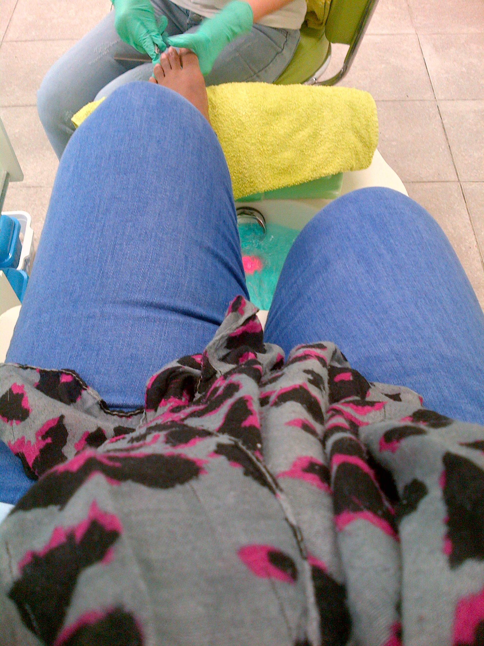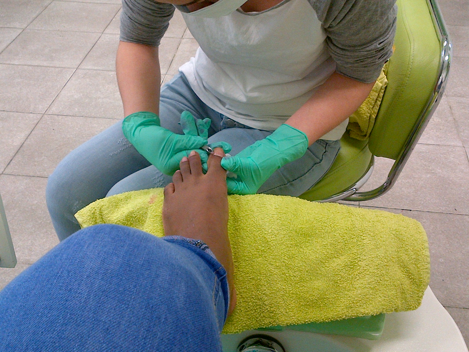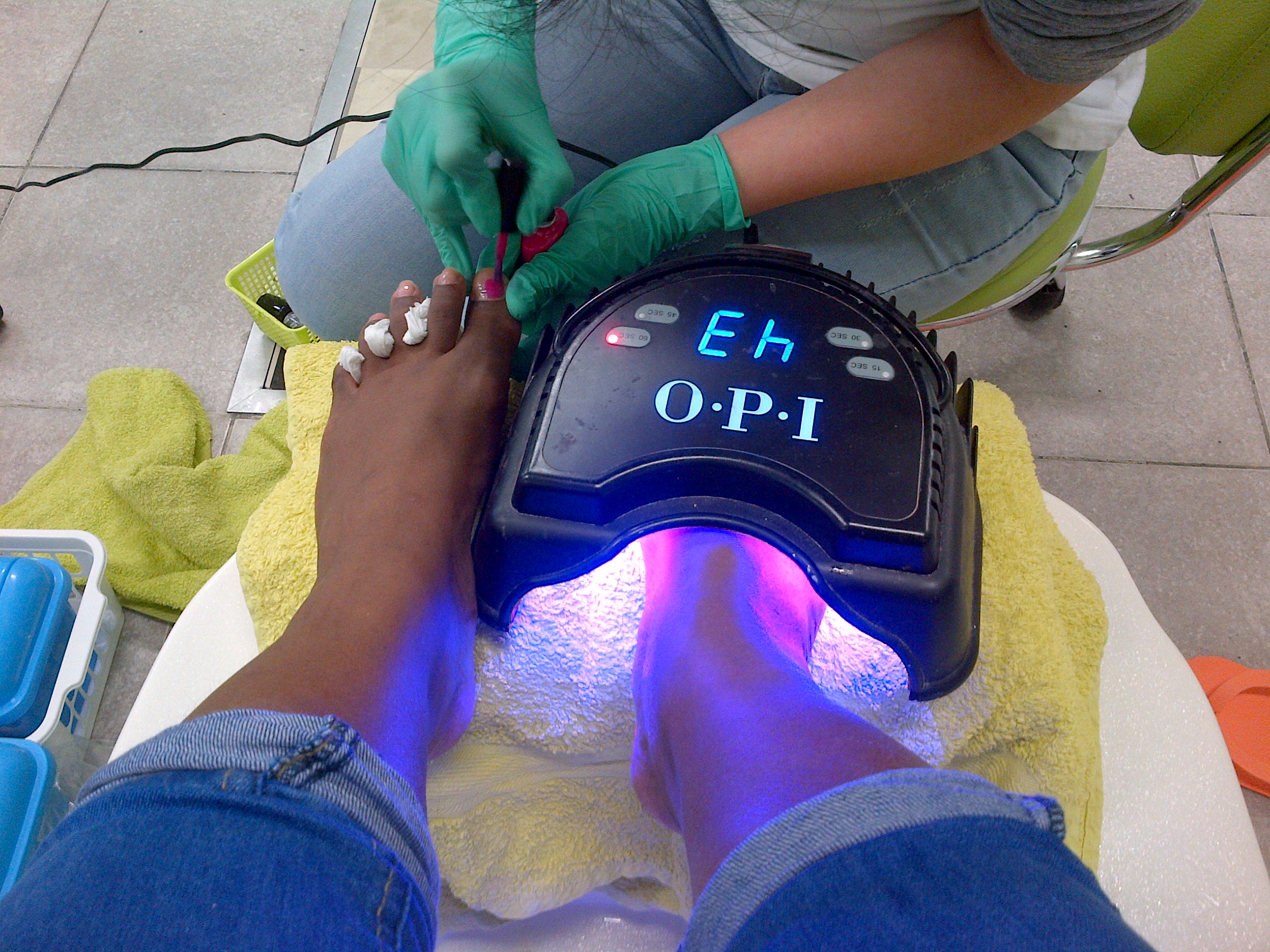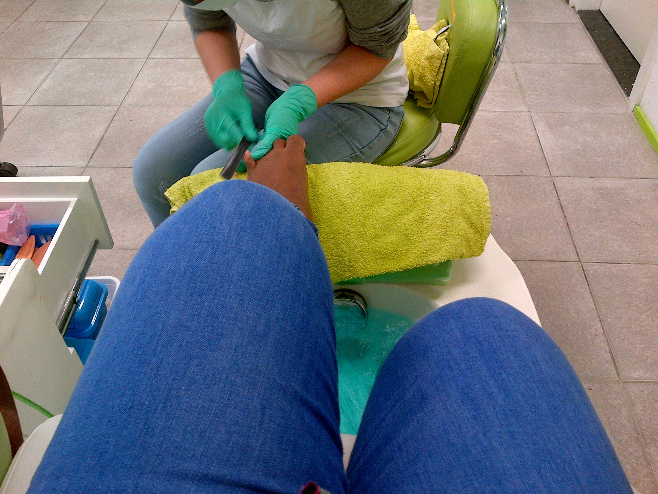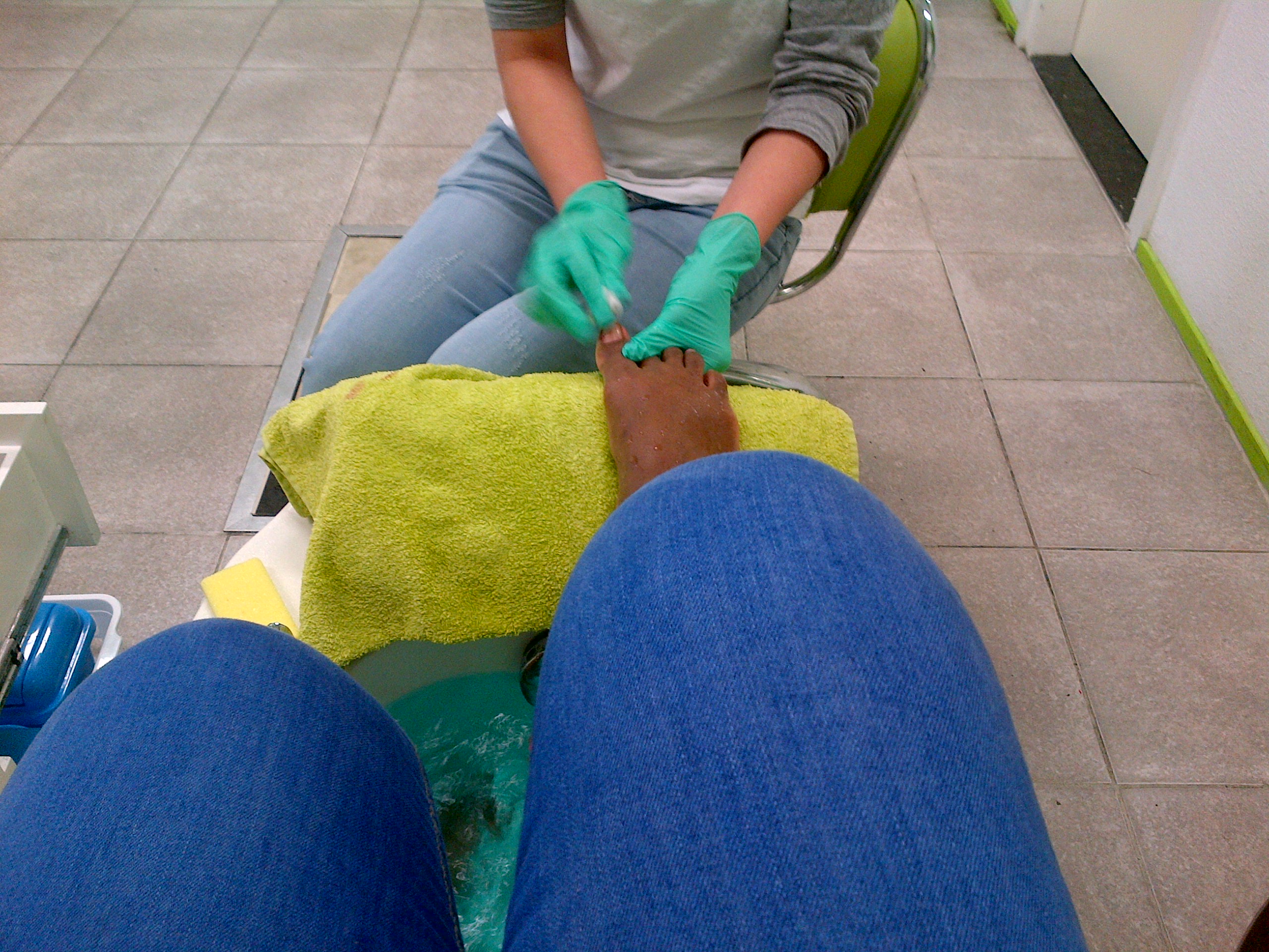 First the lady started of with removing the old nail polish. Than it was time to remove the toe cheese, clip the nails, and file them. After filing she also used a buffer to smoothen the nails. I didn’t get that picture because it was real quick.