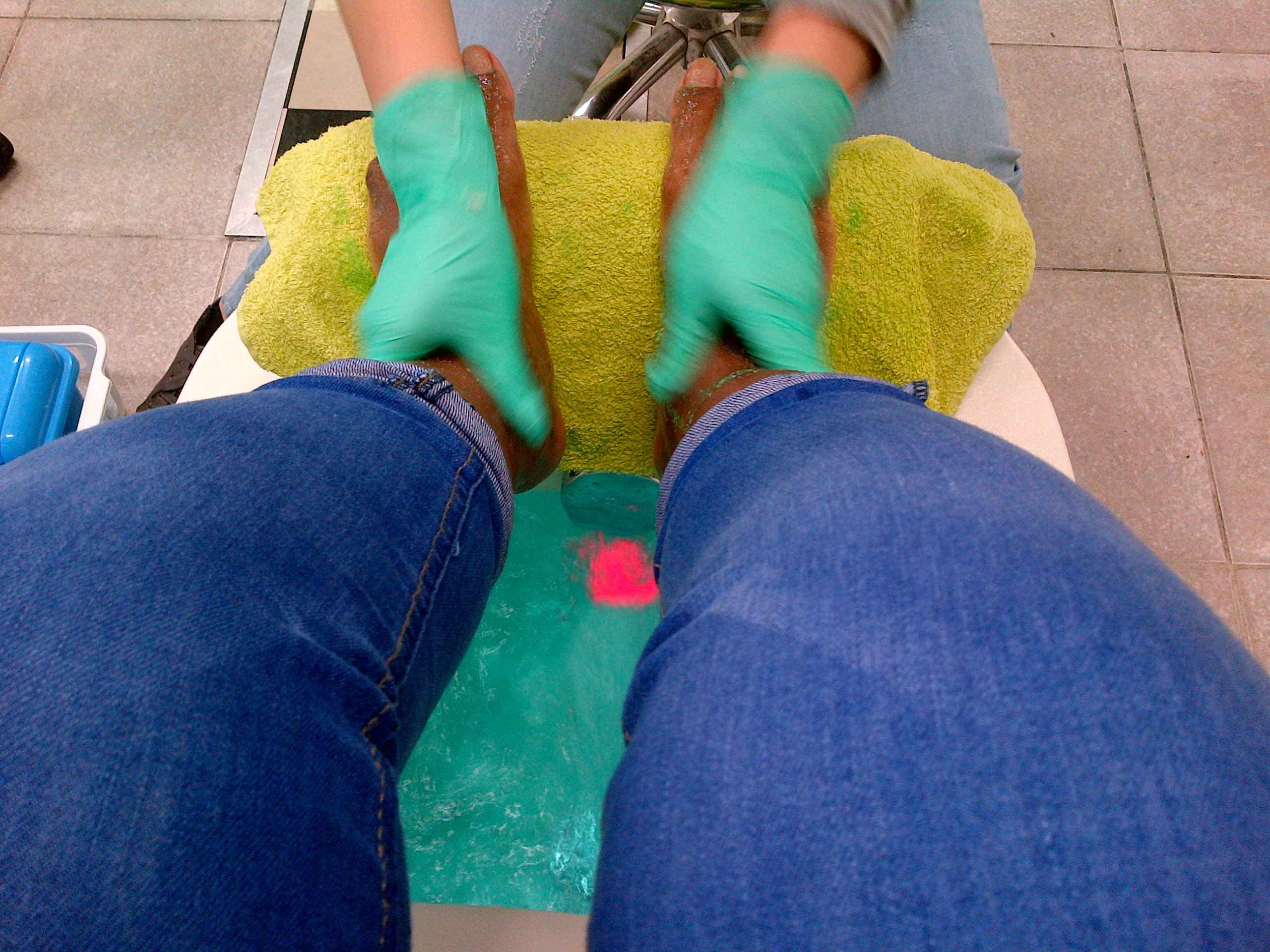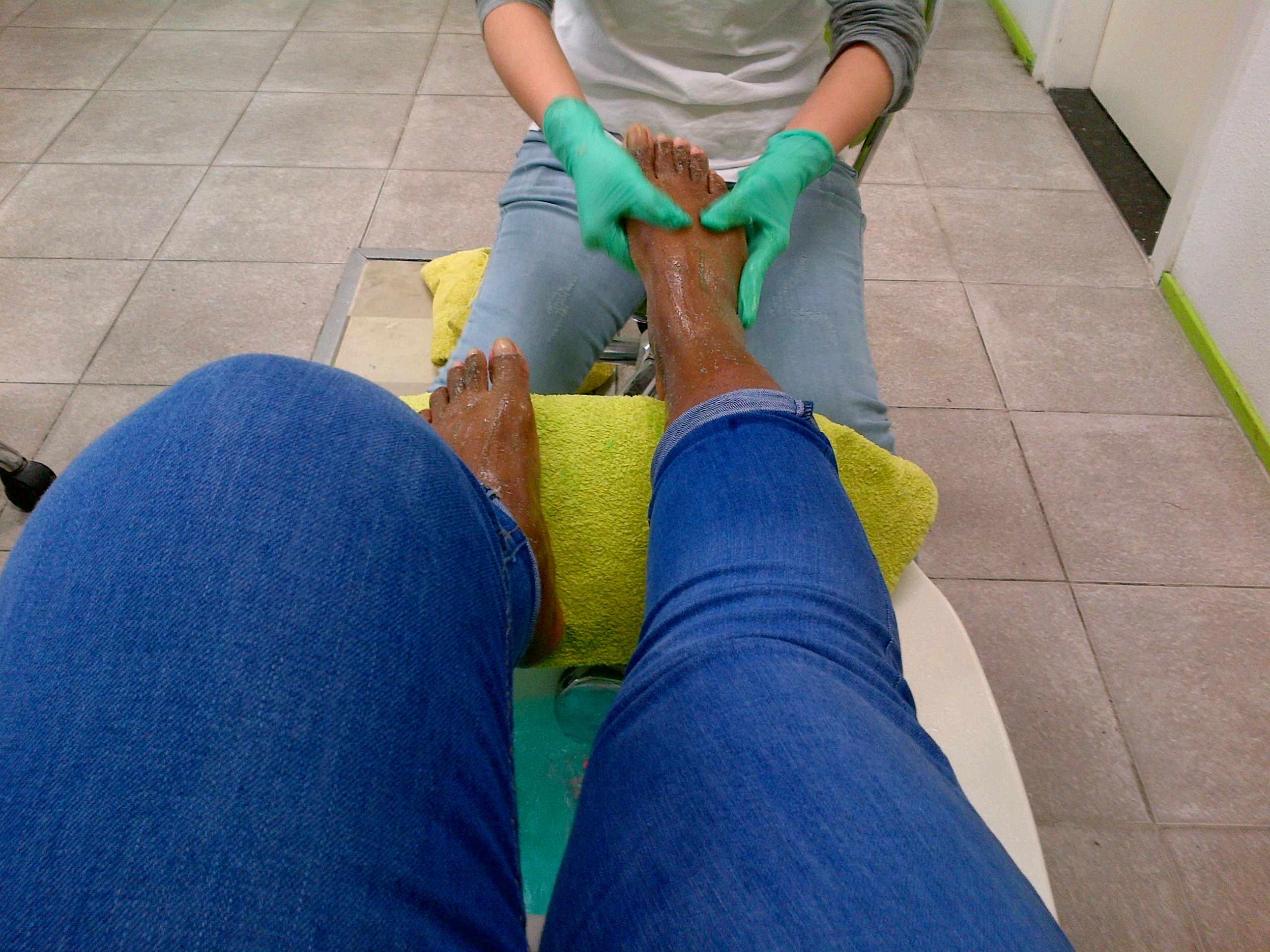 After that it was time to remove the hard skin from underneath the feet and the heels with a callous shaver, followed by scrubbing with a hard sponge. Then she scrubbed and massaged my feet, rinsed them off with luke warm water, dried them and put some foot cream.