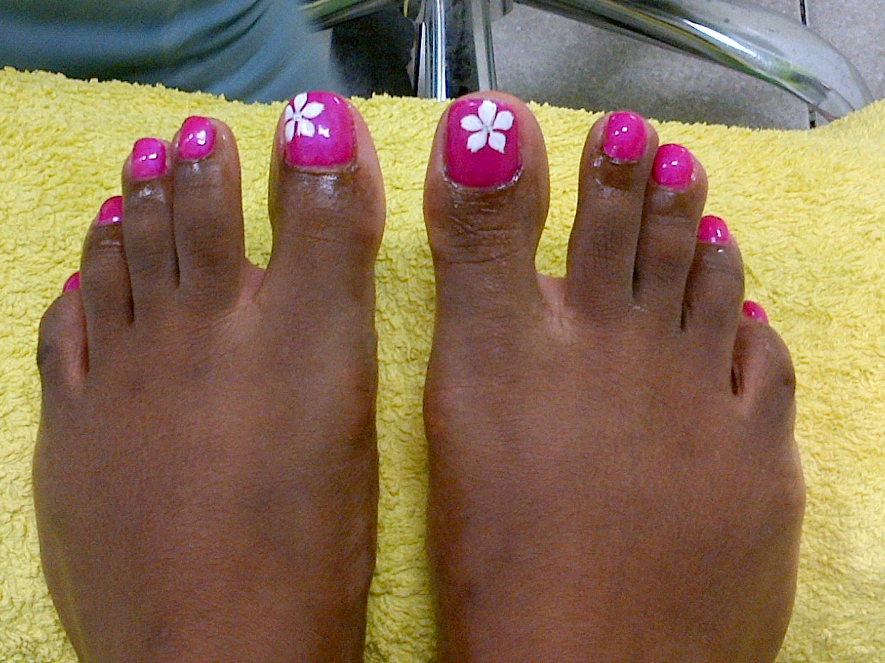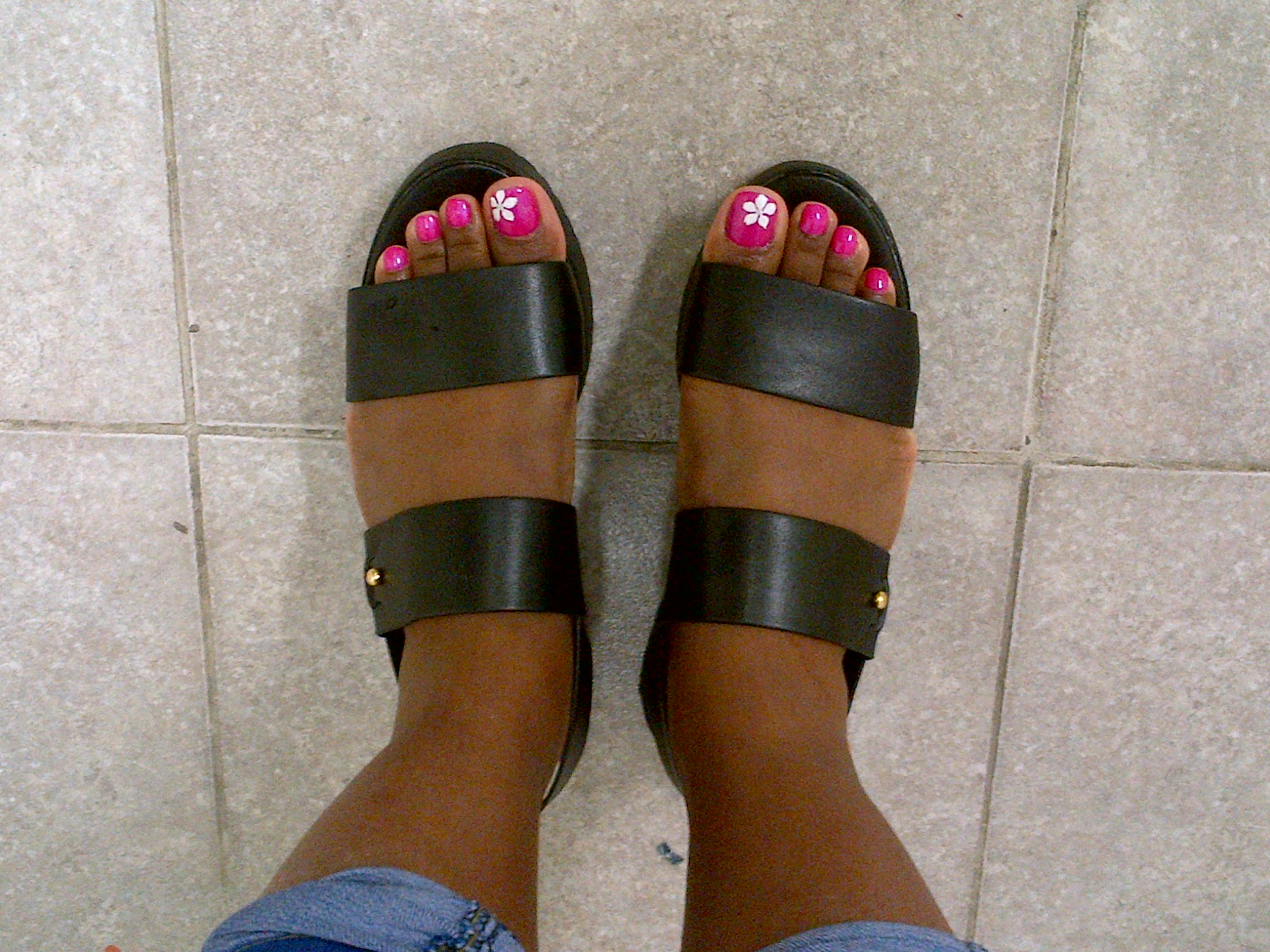 Well I guess I did understand her when she said she couldn’t do nail art, because I think that is what she literally meant. You can see that the flower left is in the corner and the other one is in the middle. She started with the one in the middle and then did the other one on my left toe in the corner. I didn’t say much about it and she kinda laughed it off. I thought I’ll let it go for this time, but the next time I want someone who can do it better. And bright side: I have a unique nail art.