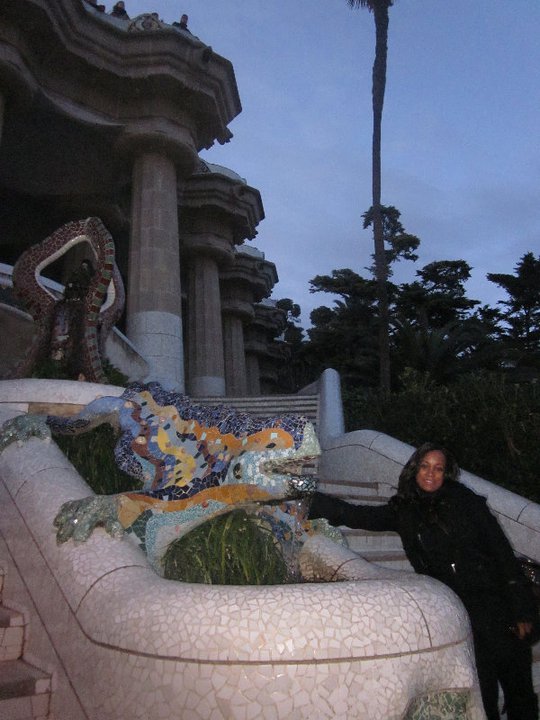 At the famous Park Guell, which you can also see in the movie Vicky Christina Barcelona: