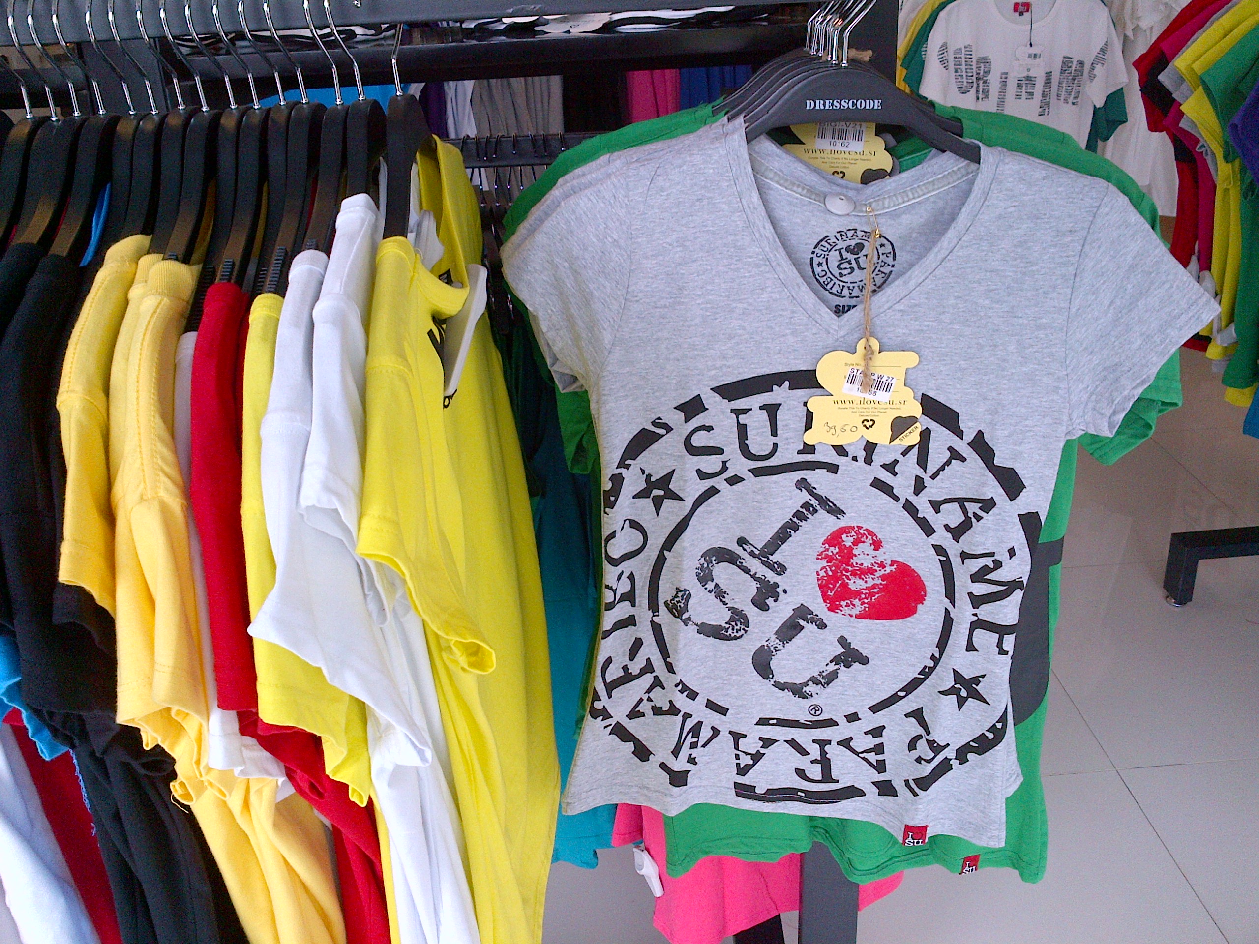 When visiting Suriname as a tourist, a I Love SU shirt is the ultimate souvenir to get yourself. Surinamese people love their country so much that they walk around with these shirts all the time: on the streets, in the clubs, at work. Meanwhile there is a number of people who say that they already live in the country and don’t need to walk around in these shirts (or shorts, pants etc.).