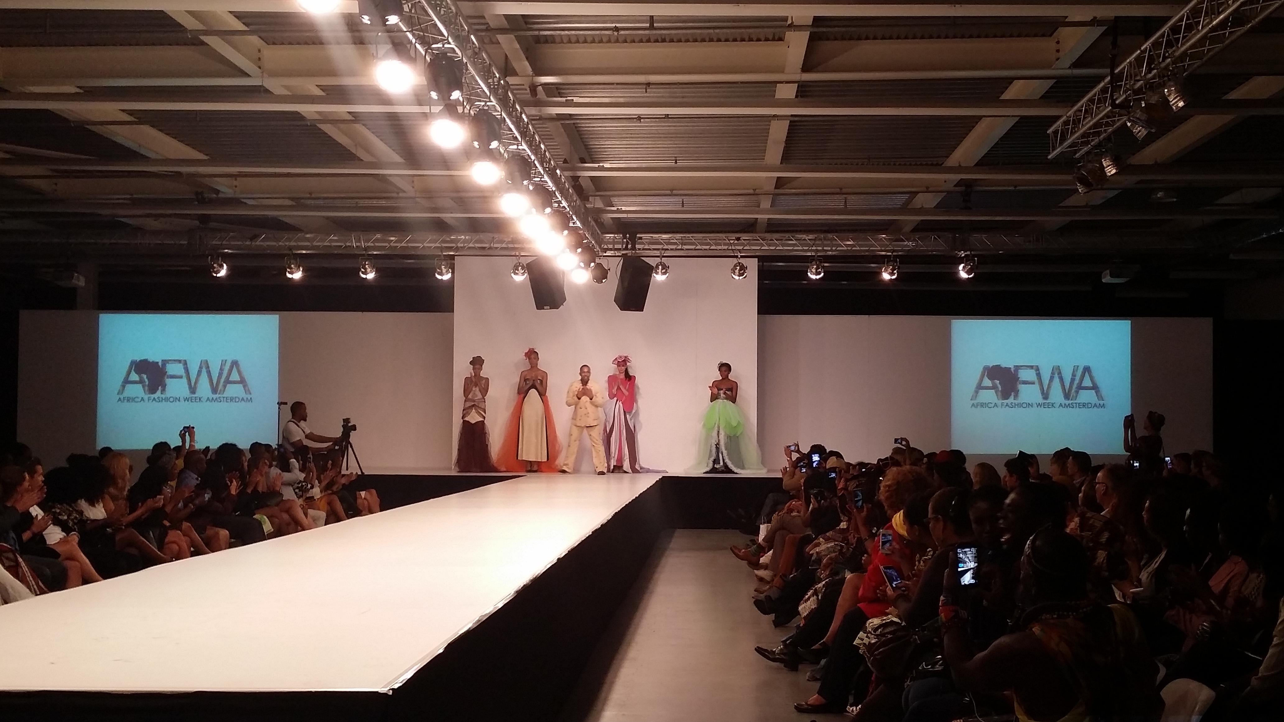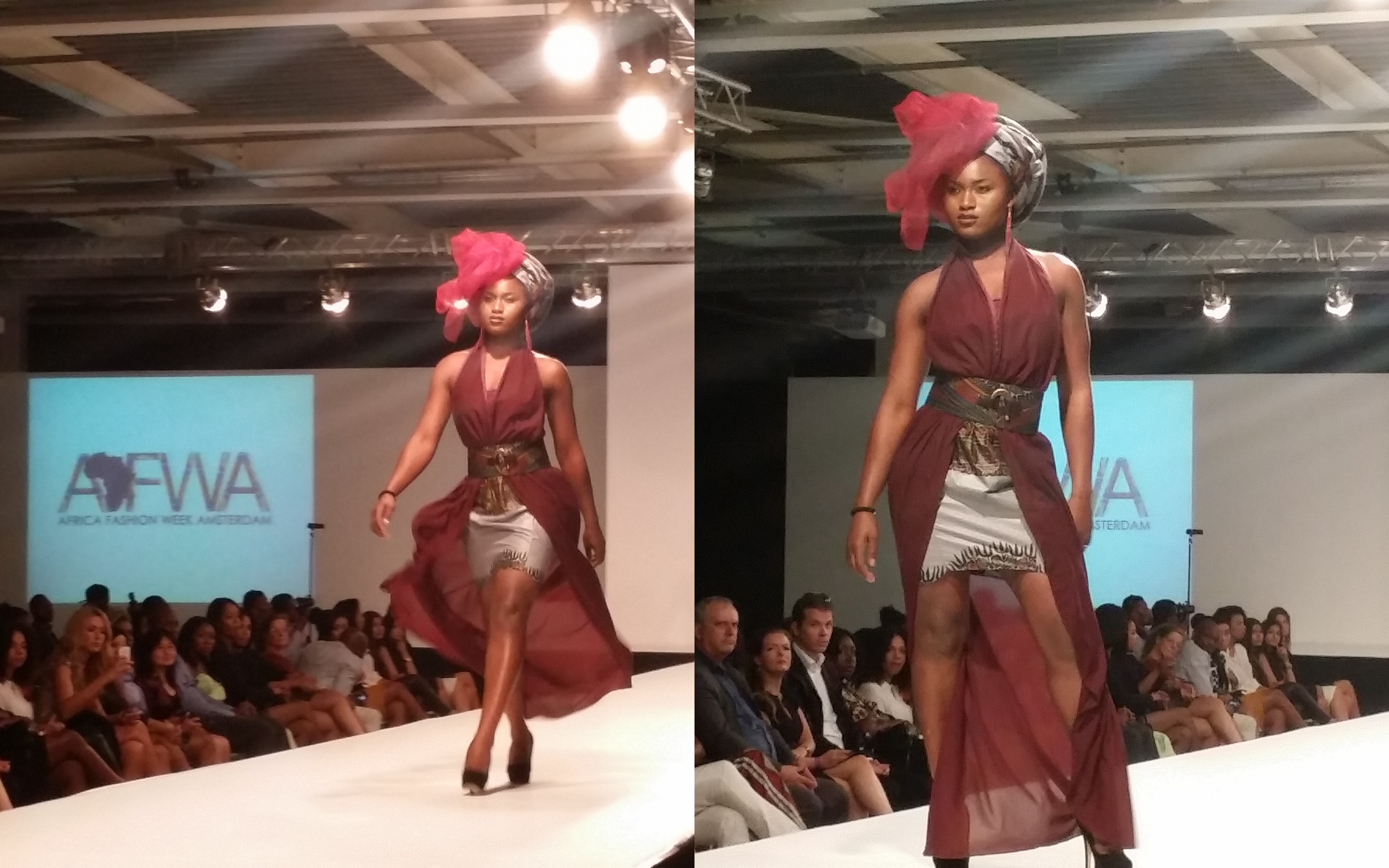 Day two of Africa Fashion Week Amsterdam in World Fashion Centre was more glitter and glamour since it was the day of the Gala Show. This meant various fashion shows with beautiful designs of the more upscale African designers, of which you could see the difference with day one. Before the fashion shows started there were some speeches that didn’t go entirely as planned, leaving the presenter to improvise which he did well. After that the doors to the runway area were closed for the preparation of the first two fashion shows and there was time for a network and photo break. Then it was Gala Show time.