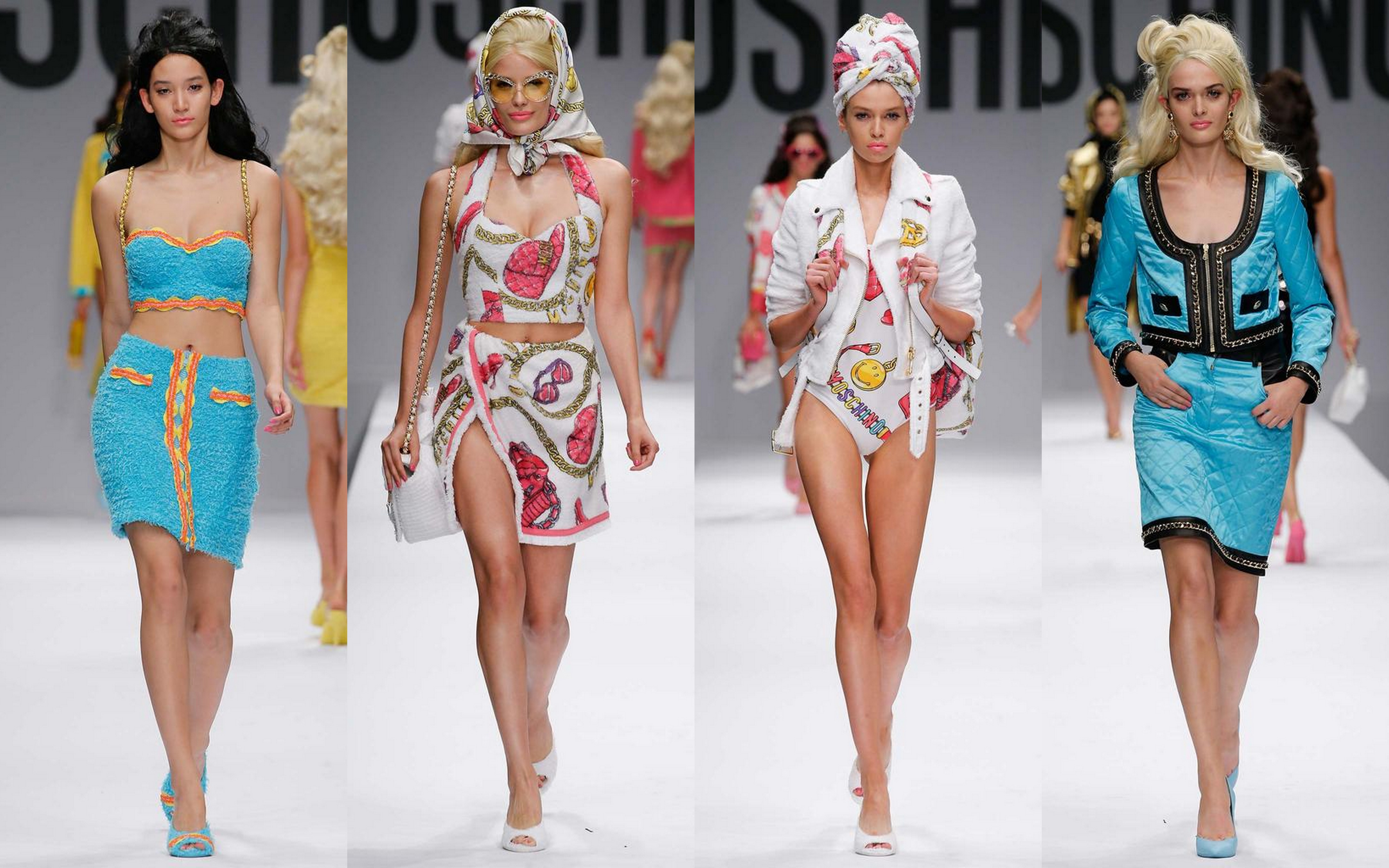 When it comes to Moschino fun, playful, provoking and unorthodox are words you can best use to describe the looks this Italian brand gives you. As the late designer Franco Moschino didn’t pay any mind to the fashion elite, the current designer Jeremy Scott, who made his debut at Moschino last season, is happy to continue this tradition. No one can do Kitsch better than Scott and with his Spring/ Summer 2015 designs he proves this again.