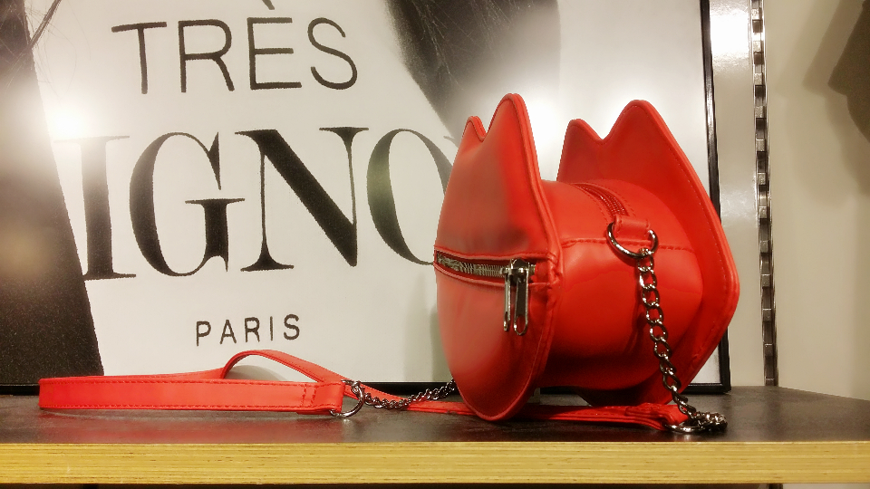 On Wednesday this week I went to the city for the first time this fall. Curious to see what trends are in store right now and what beauty products are a must have, I visited a few stores and H&M was one of them. Of course how can I resist the H&M when it comes to fall fashion right. The first thing that captured my attention when walking into the store was this cute little red lips bag with a long strap that I just had to share with you.