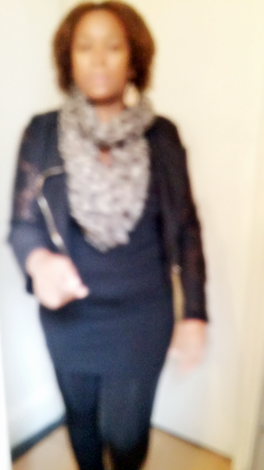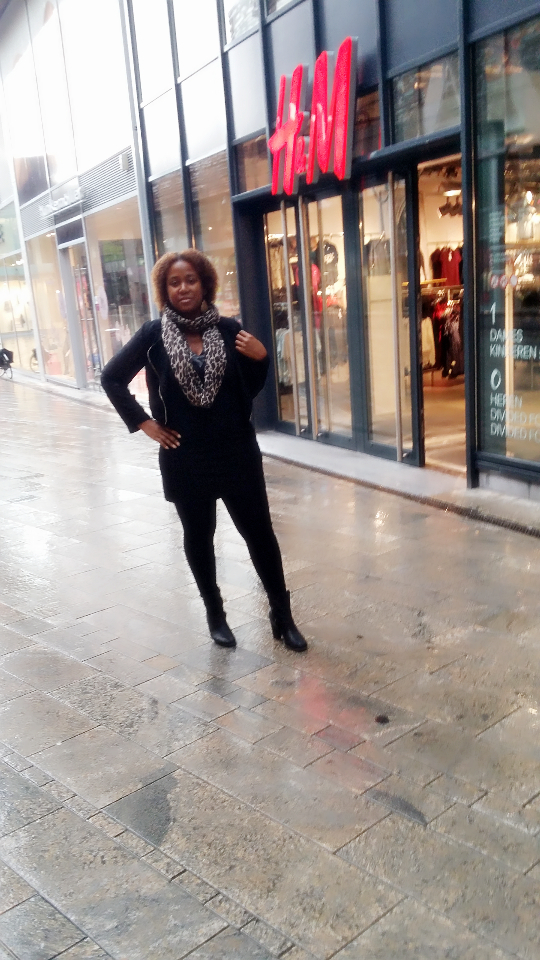 My outfit consisted out of a pair of black high waist leggings, a dress with nice crochet and faux leather details, which you can’t really see, and a my fave black jacket with lace details. On my feet were my most comfortable black booties, that I have for almost two years now. It is finally time to put back on the booties. Because I wanted to give it some colour I added my favourite accessory to complete the look: the scarf. Doing that I choose my favourite print in a colour that is always a good choice for fall season, brown. Black and brown detail. You simply can’t go wrong with that. Posing right before I left the house and then in front of the H&M store where I did an amazing fashion find, which I wrote about in my first Spotted post. I love fall fashion. Hello Autumn.