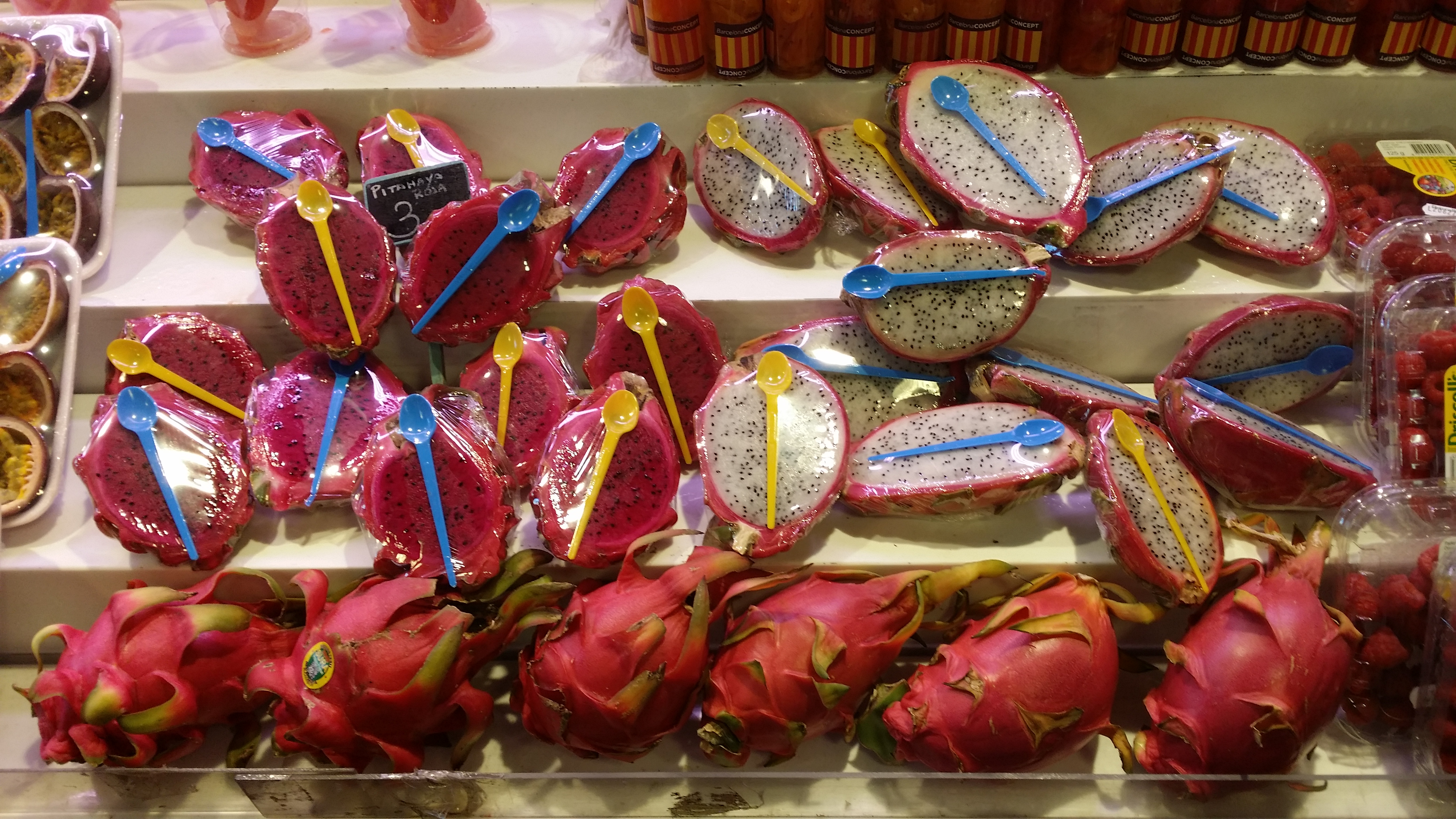 While on La Rambla, I had to take the girls to la Boqueria, the market with fresh fruits, vegetables, nuts, meat, fish, herbs, and more deliciousness for your pleasure. The place to go if you love fresh food: