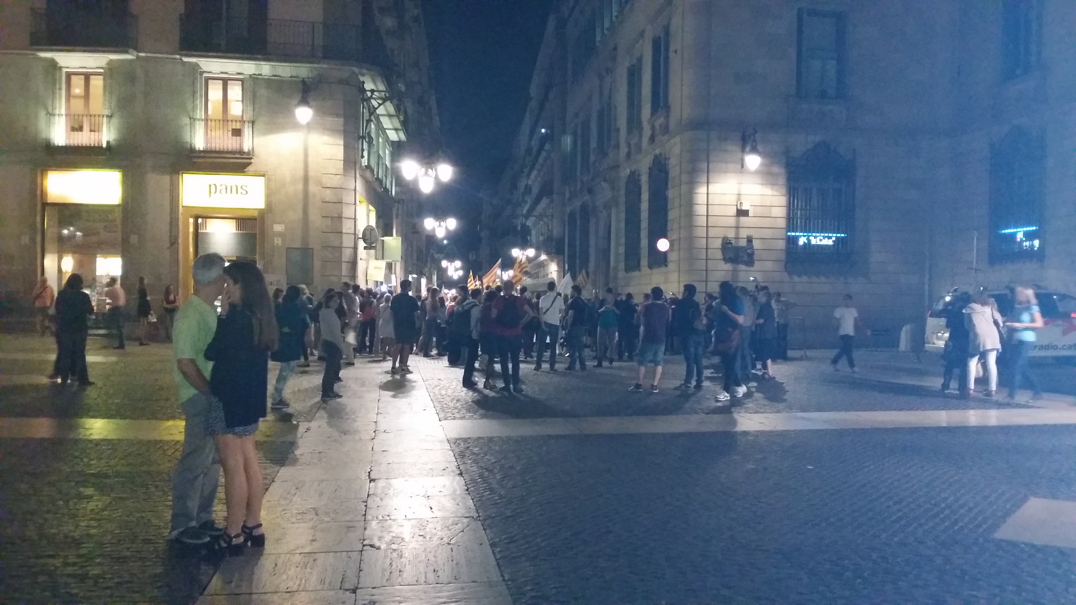 Barcelona Streets by night. Walking into a demonstration on the way home: