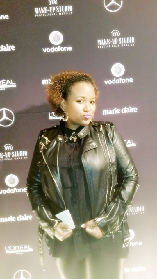 My first day at MBFWA, attending the show of Aziz Bekkaoui, I was rocking an all black faux leather look outfit with leopard print accessories, my scarf and my bag. This was to give the already tough biker look a little extra wild touch. To make it more edgy, I choose to add my black and gold Aztec style necklace with matchy golden earrings. As for shoes, I went for black ankle boots with heels which I tuck underneath the pants. This is a good trick to elongate short legs like mine, as wearing the ankle boots over the pants would have made my legs seem shorter and thicker. Despite the badass biker look there is always that girly girl inside, so I went for soft make up and pink lips. And that completes the total look. What do you think? By the way, this is the first time I was rocking that new extra short hair after my haircut in December. Hair trick: hairspray!