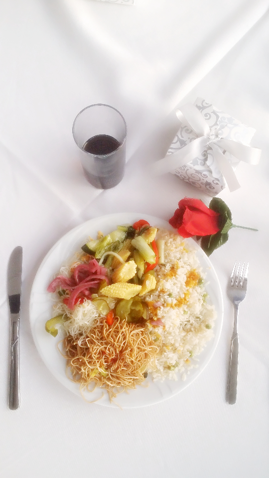 For the daytime I opted for a nude look with touches of black and threw on a colourful scarf to give the outfit that spring feeling. In the evening I went for black with touches of silver bling. You gotta remember that sometimes your face is your best accessory! Both outfits were maxi dresses with a side split. Without even knowing it beforehand, I kinda joined for Skirt Day in my own way. Check out my looks and the delicious dinner I had.