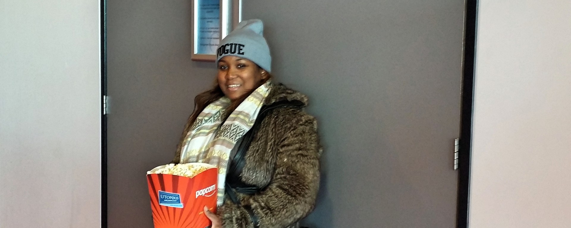 As props to Leo and a wink to the movie, I went completely in “Revenant style”. When I think of The Revenant, I think of fur, well in my case faux fur, boots and a hat. That’s exactly what I pulled out of my wardrobe. Started with picking the faux fur coat, then went for black basics to keep it simple and therefore choose to wear my black faux suede fringe boots I got in Denmark. To finish the look, I put on my stylish Vogue beanie. My Revenant outfit was born!