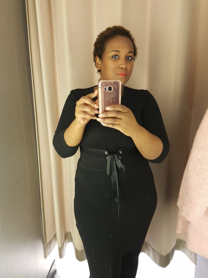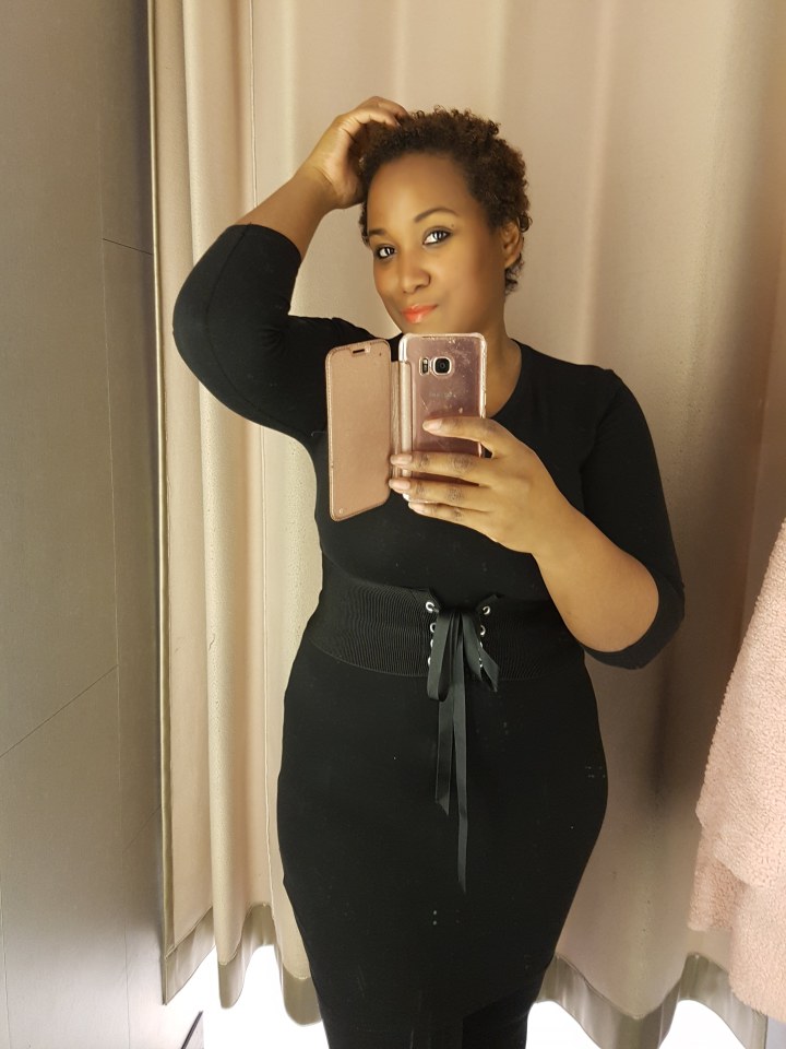 Because I went to the movies straight after work I didn’t have time to go home and change, so I decided to go to the shopping centre near the movie theatre and get me something “Fifty Shades” worthy. It turned out to be a tight black dress with sleeves and a waist belt attached to it, which has a satin string that gives it a an extra sexy touch. Simple but in my opinion so suitable for this movie.