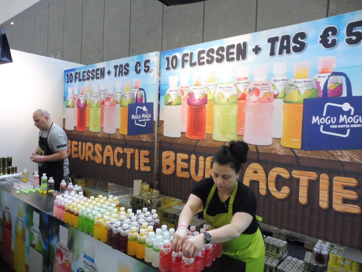 Arriving at the Food & Drinks section I was glad to see that it wasn’t that busy, which made it perfect to visit each booth in peace and try out everything that I wanted to taste. This without waiting in line or being pushed over by everyone else who was going for the same free samples of the yummy treats that were set out for the visitors to try, something that I experienced a lot of times during my visits over the years. As an annual visitor of the Huishoudbeurs, I noticed that some of the food & drink brands, who I’m used to see for the past years, were not represented this year and that there were new brands. For me that is a good thing, because although I am a fan of some of these missing brands, it’s good to see and try out other products that I don’t know yet. That’s the reason I go to the Food & Drinks section in the first place: to see which products and brands are new on the market and of course to try time out. In my case, everything that is vegetarian friendly.