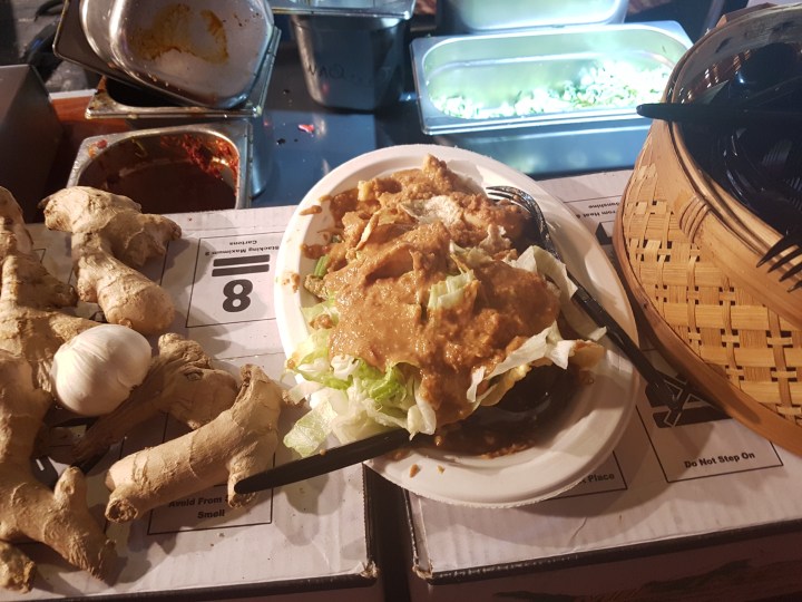 After the Huishoudbeurs was closed, the Pasar Colours Festival was still open. Time to go check out the entertainment for the day and grab a bite to eat. Before heading to the food stands, I couldn’t help myself to buy something cute at a fashion booth in there. Then it was Gado Gado for dinner and music by Wipe Out Connection band on the background. Ended my visit at Pasar posing with Hostess Sylvia. Check it out here: