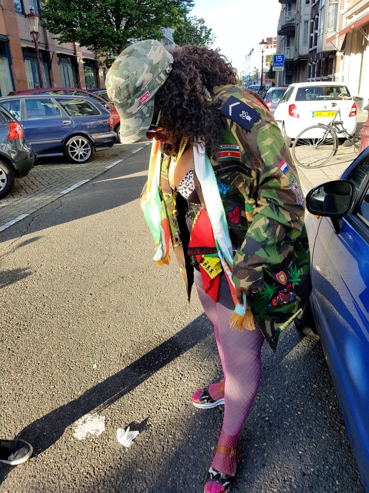 Two days before the event, there I was in Amsterdam shopping for my Jamrock ootd, knowing exactly what kind of army look I wanted. With that jacket centerpiece in mind, I stepped into a boutique, looked around, yet didn’t see anything special at first. But hen it was like something told me to turn around and look at the clothing rack behind me. There they were. Army jackets, just like I pictured in my mind.